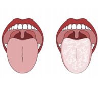 Le malattie della bocca possono essere di tutti i colori: rosee, rosse, violacee, blu, verdognole, marroni, nere, grigie, bianche, gialle. È comune il riscontro della Candidiasi, malattia infettiva portata da un fungo e che si presenta in molte forme: nei bambini è il cosiddetto Mughetto, sono pseudomembrane bianche, cremose, che tempestano guance, palato e lingua. La Candidiasi può comparire anche dopo terapia antibiotica, negli anziani o nelle persone defedate.
